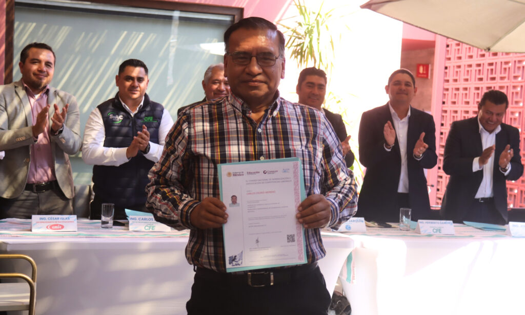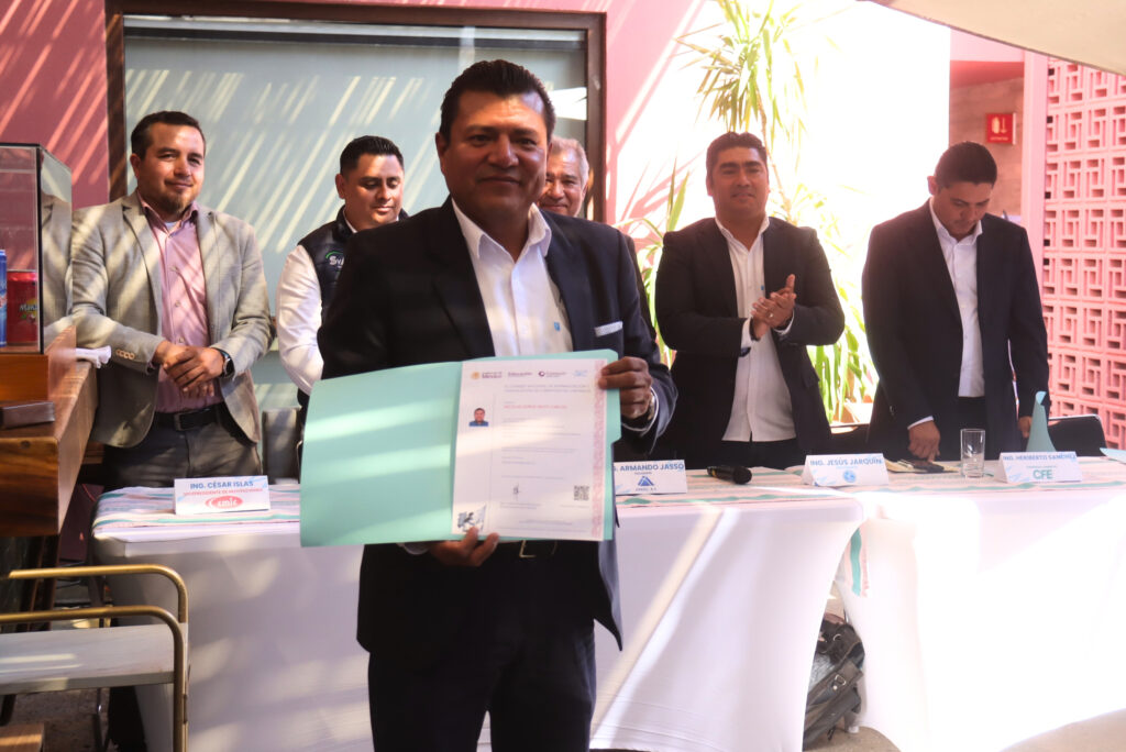 Durante un acto protocolario se entregaron constancias que acreditan la capacitación en “Realización y mantenimiento de instalaciones y sistemas eléctricos”, certificación expedida por el Consejo Nacional de Normalización y Certificación de Competencias Laborales (Conocer) e impartida por la Asociación Mexicana de Empresas del Ramo de Instalaciones para la Construcción (AMERIC).