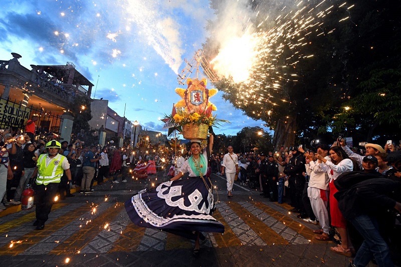 Las ruedas de pirotecnia anunciaron el paso del contingente que cimbró el Corazón Cultural de México con sus luces multicolores. El sonido de las chirimías invitaron a disfrutar de esta gran fiesta.