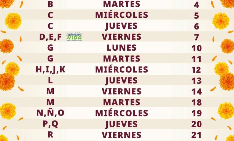 La secretaria Ariadna Montiel agregó que la fecha de pago, se puede consultar en la página oficial de la Secretaría de Bienestar: gob.mx/bienestar. Para brindar mejor atención, el depósito bancario se realiza de acuerdo con la letra del primer apellido del derechohabiente, bajo el siguiente calendario: