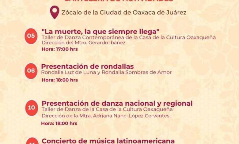 Del 5 al 14 de noviembre, ofrece la CCO actividades culturales en el Zócalo de la ciudad de Oaxaca
