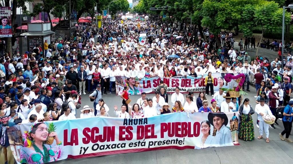 Portando una lona con la frase: “Ahora la SCJN es del pueblo y Oaxaca está presente”, los representantes del partido político guinda manifestaron que se hizo la voluntad ciudadana, más no un acuerdo político e influyentismo.