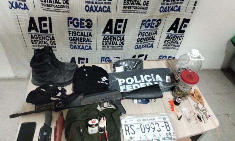Esta acción de combate a la delincuencia organizada se realizó en un domicilio ubicado en la calle Laguna Encantada del Sector U2 de la Crucecita en Bahías de Huatulco, donde aseguraron chalecos tácticos con placas balísticas, mangas de hule con el logotipo de la Policía Federal.
