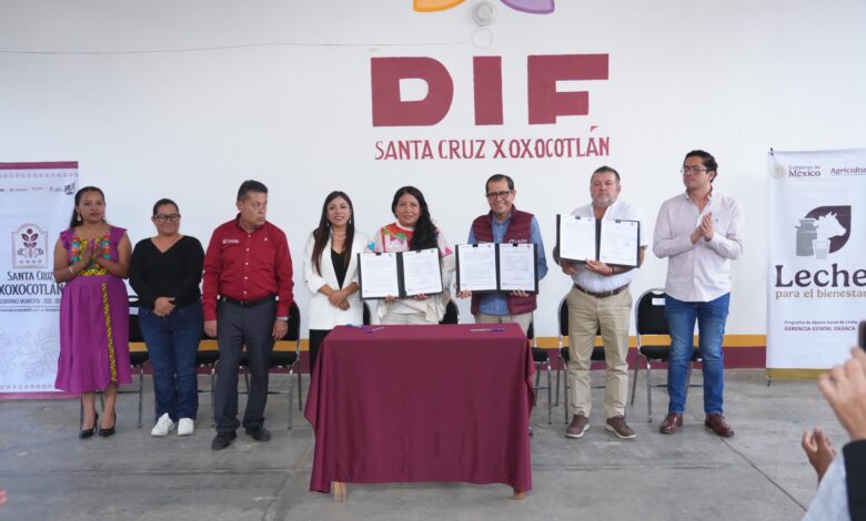Santa Cruz Xoxocotlán, Oax., 19 de agosto de 2025. – Priorizando el desarrollo y una alimentación saludable para las familias de Santa Cruz Xoxocotlán, la presidenta municipal Nancy Benítez Zárate, junto al gerente nacional de Abasto Social de Leche para el Bienestar, Víctor Hugo Pérez Rojas, firmaron un convenio de colaboración que permitirá asegurar que este programa llegue a cada rincón del municipio.