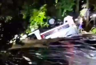 El accidente ocurrió en el kilómetro 167, donde el arroyo presentaba un nivel elevado debido a las fuertes precipitaciones pluviales, toda vez que el vehículo transportaba a 10 personas cuando intentó atravesar el cauce y terminó volcado por la fuerza del agua.