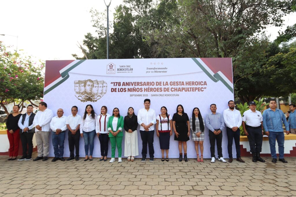Santa Cruz Xoxocotlán, Oax., 13 de septiembre de 2025.– Con motivo del 178 aniversario de la Gesta Heroica de los Niños Héroes de Chapultepec, la presidenta municipal de Santa Cruz Xoxocotlán, Nancy Benítez Zárate, encabezó la ceremonia cívica conmemorativa, donde reconoció el valor y patriotismo de los jóvenes cadetes.