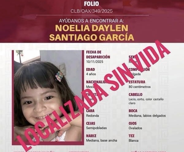 Juchitán de Zaragoza, Oaxaca. – Hoy, Juchitán se encuentra con  el corazón roto. La noticia que nadie quería escuchar se confirmó: la pequeña Noelia, reportada como desaparecida el pasado 10 de noviembre, fue localizada sin vida, según informó la Fiscalía General del Estado de Oaxaca (FGEO).