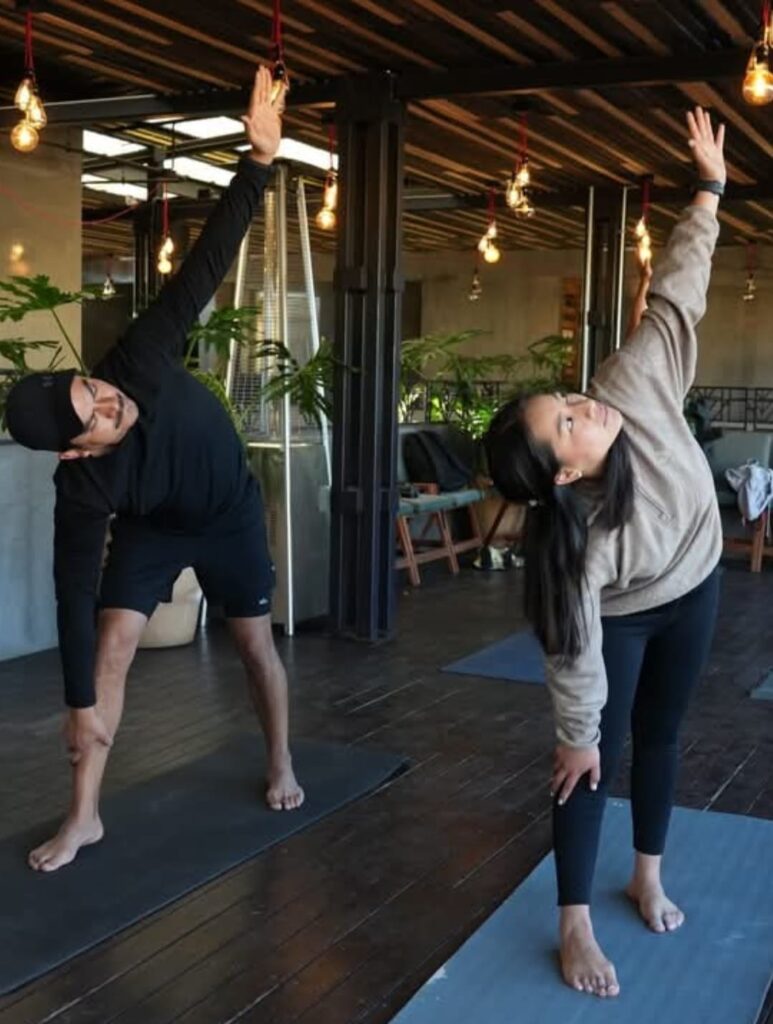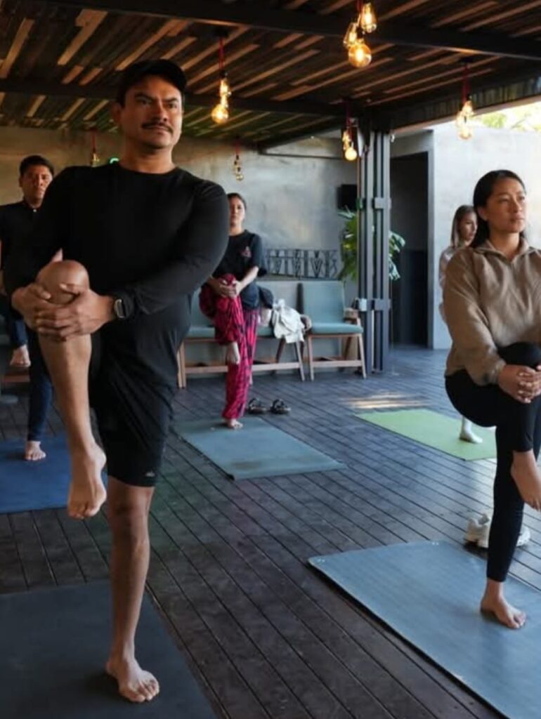 - En la foto: Posturas de yoga y equilibrio.