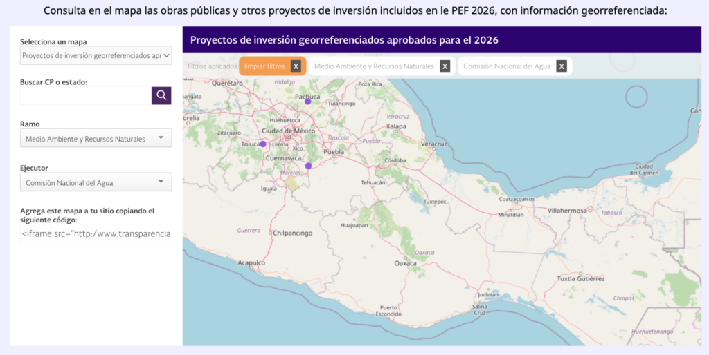 Esto, a pesar de que la licitación para la construcción de la presa fue lanzada por la Comisión Nacional del Agua (Conagua) el 9 de octubre de 2025, es decir, 26 días antes de la aprobación -en lo general- del PEF 2026 por parte del Congreso Federal.