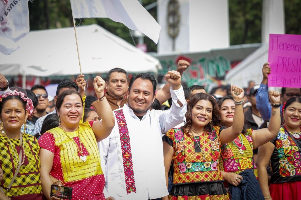 Acompañado por centenares de hombres y mujeres del Istmo y de otras regiones oaxaqueñas, integrantes del #EquipoEMP, quienes lanzaban emocionadas vivas y porras a favor de la mandataria, destacó los logros de la administración federal en su primer año de gobierno.