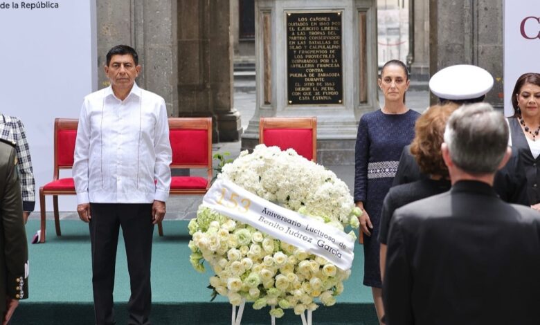 • El Gobernador de Oaxaca y la Presidenta de México conmemoraron el 153 Aniversario Luctuoso de Benito Juárez en Palacio Nacional